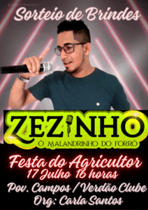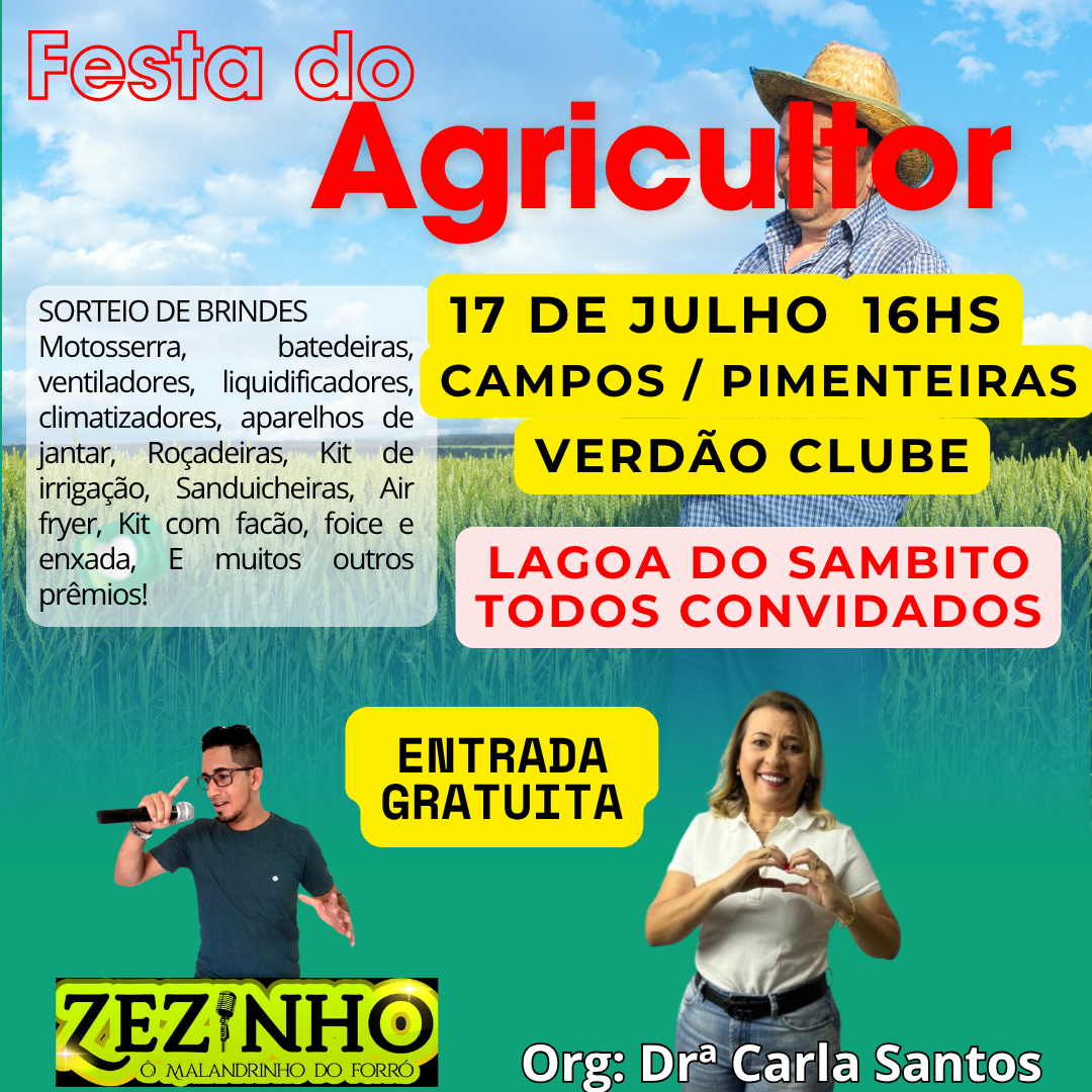 No dia 17 de julho, a partir das 16h, o Verdão Clube, no Povoado Campos, será palco de um evento comemorativo ao Mês do Agricultor, com muita música, sorteios e confraternização.